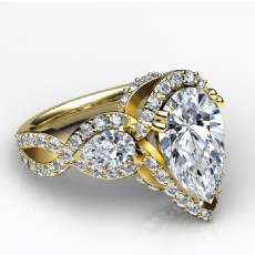 Halo Pave Filigree Sidestone Pear diamond engagement Ring in 14k Gold Yellow