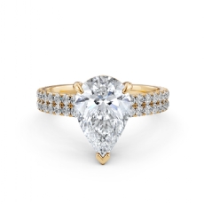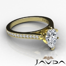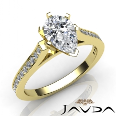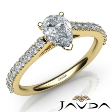 U Prong Setting Sidestone Pear diamond engagement Ring in 14k Gold Yellow