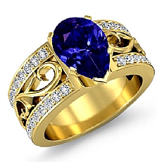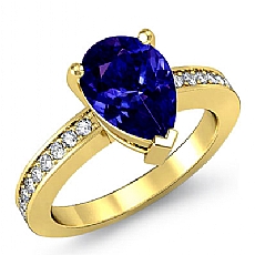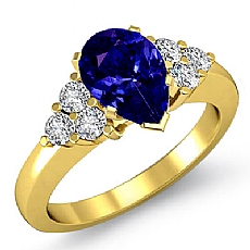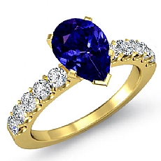 Prong Set Classic Side Stone Pear diamond engagement Ring in 14k Gold Yellow