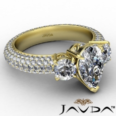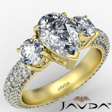 Micro Pave Set Three Stone Pear diamond engagement Ring in 14k Gold Yellow