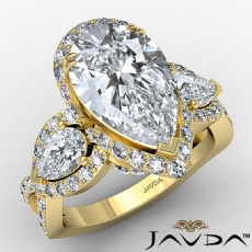 Three Stone Pave Sidestone Pear diamond engagement Ring in 14k Gold Yellow