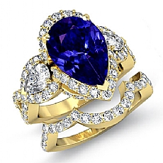 3 Stone Bridal Ring Sets Pear diamond engagement Ring in 14k Gold Yellow