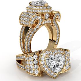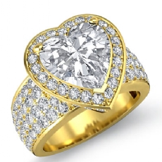 4 Row Shank Halo Pave Heart diamond engagement Ring in 14k Gold Yellow
