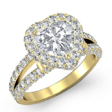 Split Shank Halo Pave Set Heart diamond engagement Ring in 14k Gold Yellow