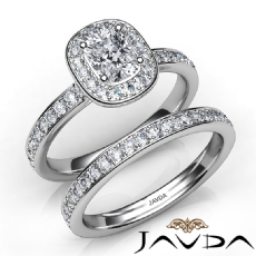 Accent Diamond Halo Pave Cushion diamond engagement Ring in Platinum 950