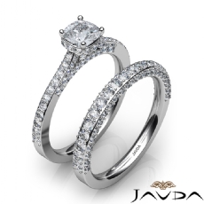 Three Stone Pave Sidestone Cushion diamond engagement Ring in Platinum 950