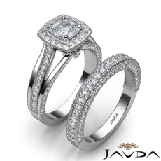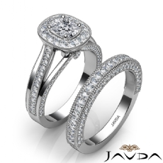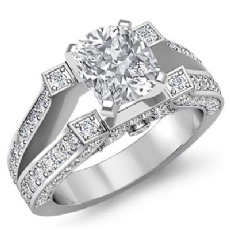Milgrain Halo Pave Split Shank Cushion diamond Ring in Platinum 950