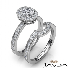 Milgrain Edge Halo Pave Set Cushion diamond Ring in Platinum 950