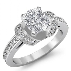 Designer Shank Halo Pave Cushion diamond engagement Ring in Platinum 950