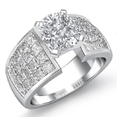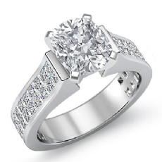Classic Side Stone Invisible Cushion diamond engagement Ring in Platinum 950