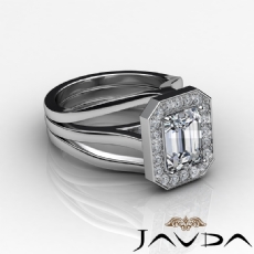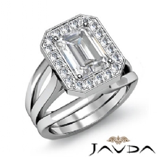 Crown Halo Petite Pave Set Emerald diamond Ring in Platinum 950