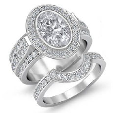 3 Row Bezel Halo Bridal Set Oval diamond engagement Ring in Platinum 950