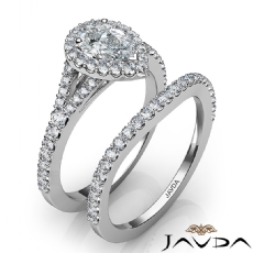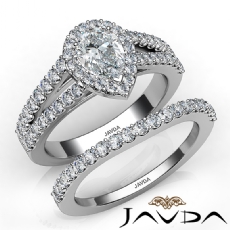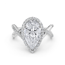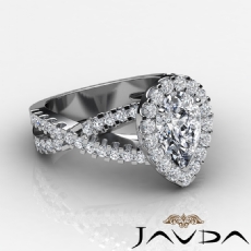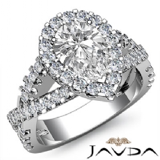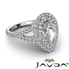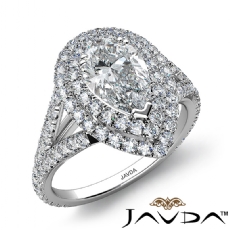 V Shaped Shank Double Halo Pear diamond engagement Ring in Platinum 950