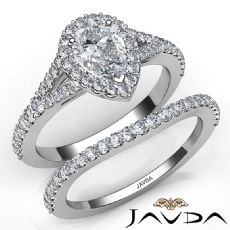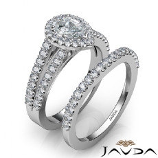 Cathedral Halo French Pave Pear diamond Ring in Platinum 950