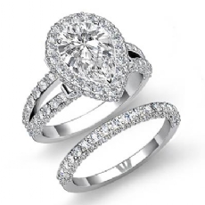 Petite Pave Halo 4 Row Shank Pear diamond Ring in Platinum 950