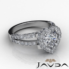 Pave Setting Halo Sidestone Heart diamond engagement Ring in Platinum 950