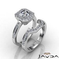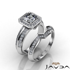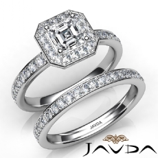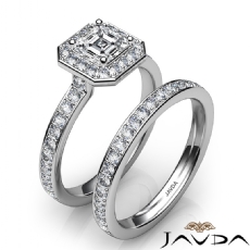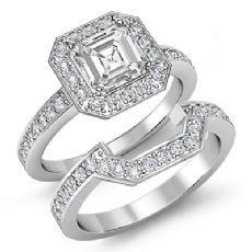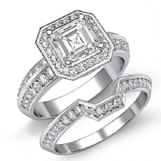 Halo 2 Row Shank Bridal Set Asscher diamond engagement Ring in Platinum 950