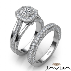 Split Shank Pave Bridal Set Asscher diamond Ring in Platinum 950
