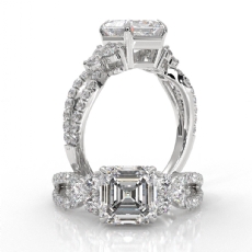 Three Stone Pave Sidestone Asscher diamond engagement Ring in Platinum 950
