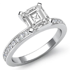 3 Row Micro Pave Set Shank Asscher diamond Ring in Platinum 950