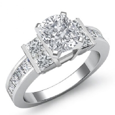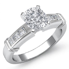 Channel Set Shank Prong Cushion diamond engagement Ring in 18k Gold White