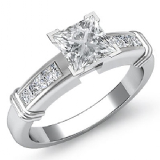 Classic Channel Set 4 Prong Princess diamond engagement Ring in 18k Gold White