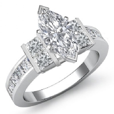 3 Stone Channel Sidestone Oval diamond engagement Ring in 18k Gold White