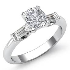 4 Prong Channel Baguette Set Cushion diamond engagement Ring in 18k Gold White
