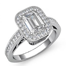Vintage Halo Sidestone Pave Emerald diamond engagement Ring in 18k Gold White