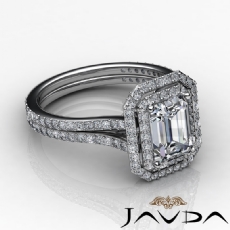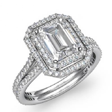 Split Shank Halo French Pave Emerald diamond Ring in 18k Gold White