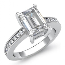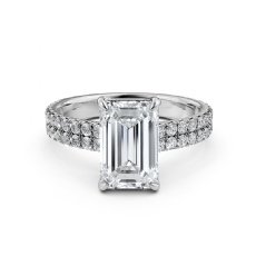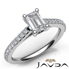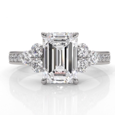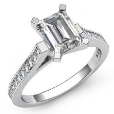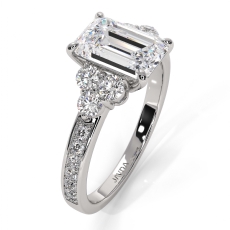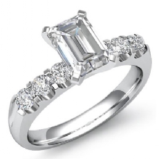 U Prong Setting Sidestone Emerald diamond engagement Ring in 18k Gold White