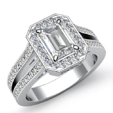 Halo Three Stone Split Shank Emerald diamond Ring in 18k Gold White