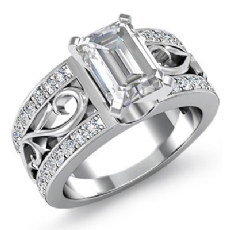 Vintage Eternity Split Shank Emerald diamond engagement Ring in 18k Gold White