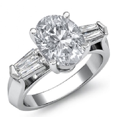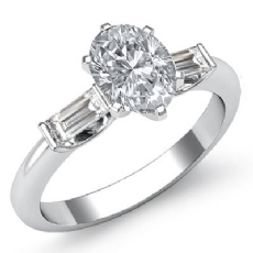 Baguette Three Stone Halo Pave Oval diamond Ring in 18k Gold White