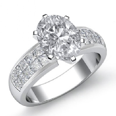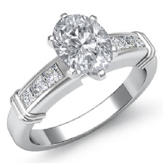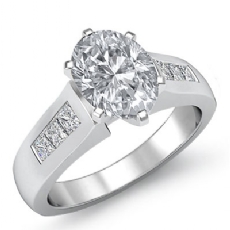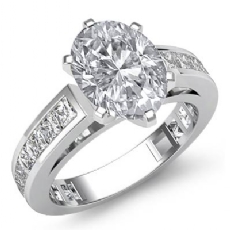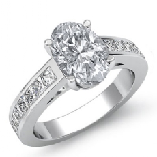 Channel Set Shank Prong Oval diamond engagement Ring in 18k Gold White