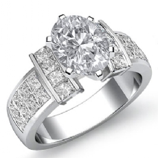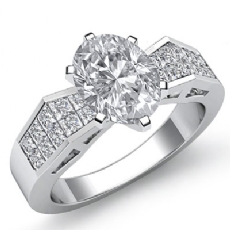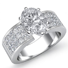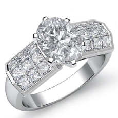 Classic Side-Stone Invisible Oval diamond engagement Ring in 18k Gold White