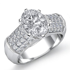 Classic Side Stone Invisible Oval diamond engagement Ring in 18k Gold White