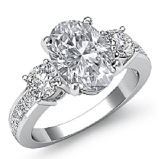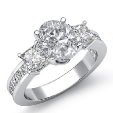 3 Stone Channel Sidestone Oval diamond engagement Ring in 18k Gold White