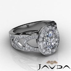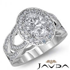 Twisted Style Halo Pave Oval diamond engagement Ring in 18k Gold White