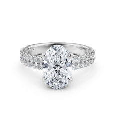 3 Row Micro Pave Set Shank Oval diamond Ring in 18k Gold White