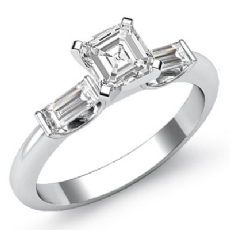 Baguette Three Stone Halo Pave Asscher diamond Ring in 18k Gold White