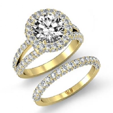 Halo Split Shank Bridal Set Round diamond Ring in 18k Gold Yellow