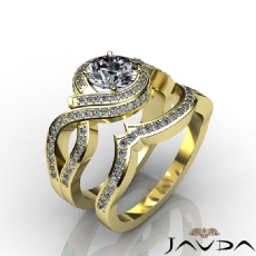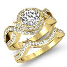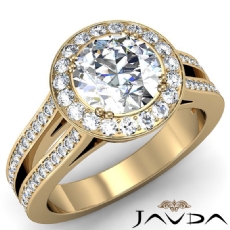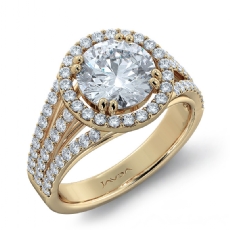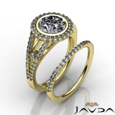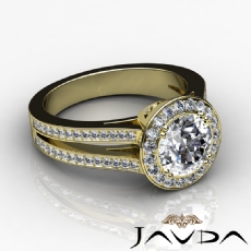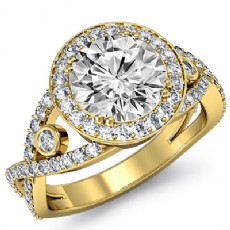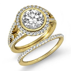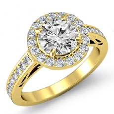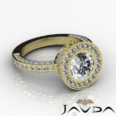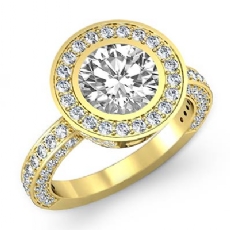 Halo Bezel Setting Sidestone Round diamond engagement Ring in 18k Gold Yellow
