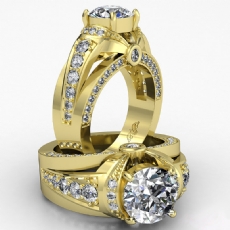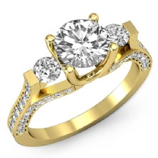 Micro Pave Set Three Stone Round diamond engagement Ring in 18k Gold Yellow