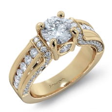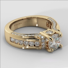 Baguette Channel Set 4 Prong Round diamond Ring in 18k Gold Yellow