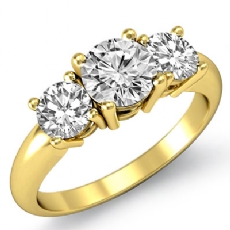 3 Stone Prong Set Sidestone Round diamond engagement Ring in 18k Gold Yellow