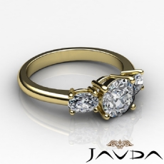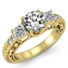 Trillion Accent 3 Stone Round diamond engagement Ring in 18k Gold Yellow