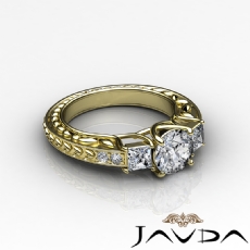 Vintage Style 3 Stone Round diamond engagement Ring in 18k Gold Yellow