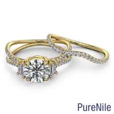 3 Stone Sidestone Bridal Set Round diamond engagement Ring in 18k Gold Yellow