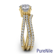 Three Stone Split Shank Round diamond engagement Ring in 18k Gold Yellow